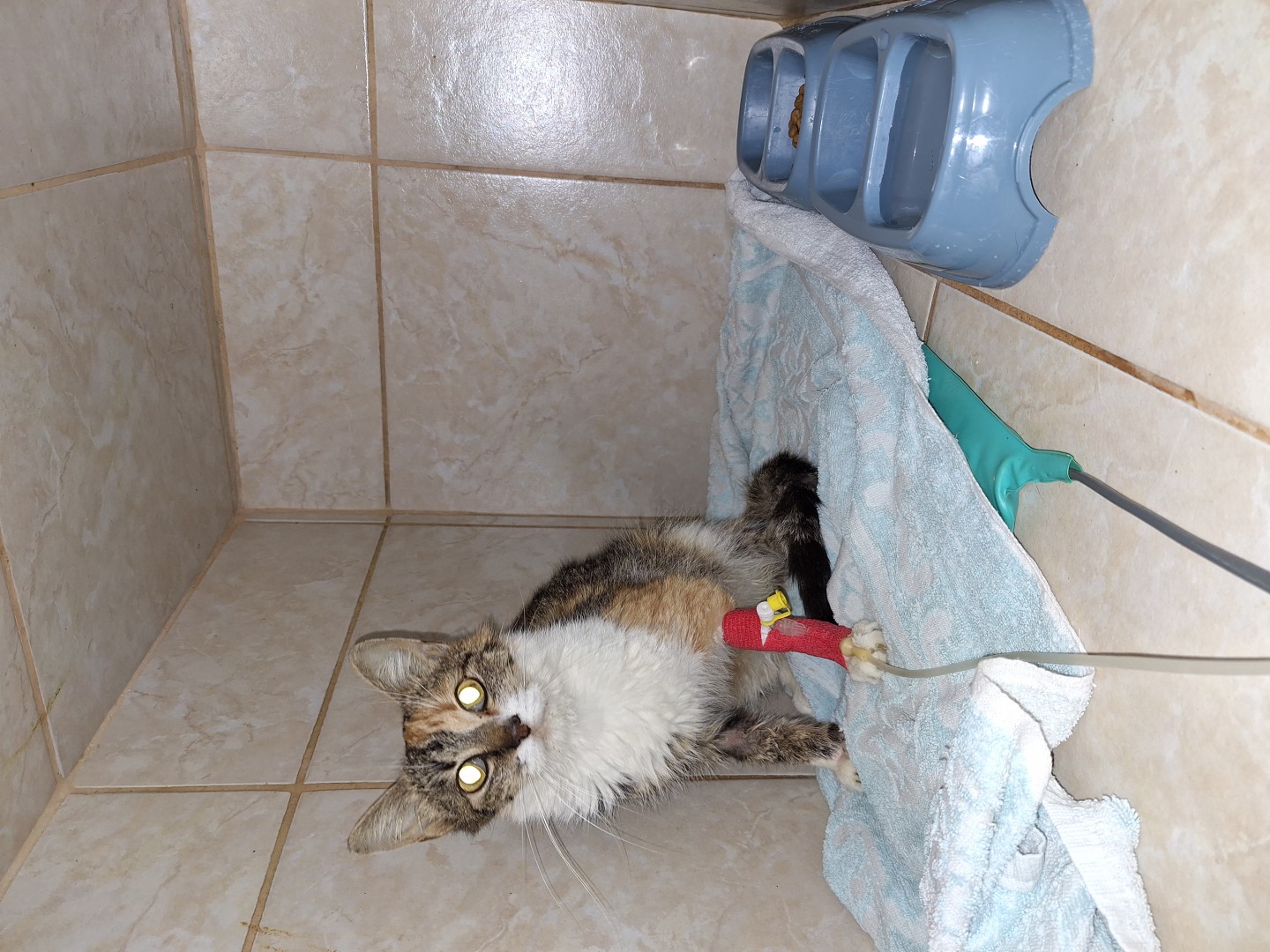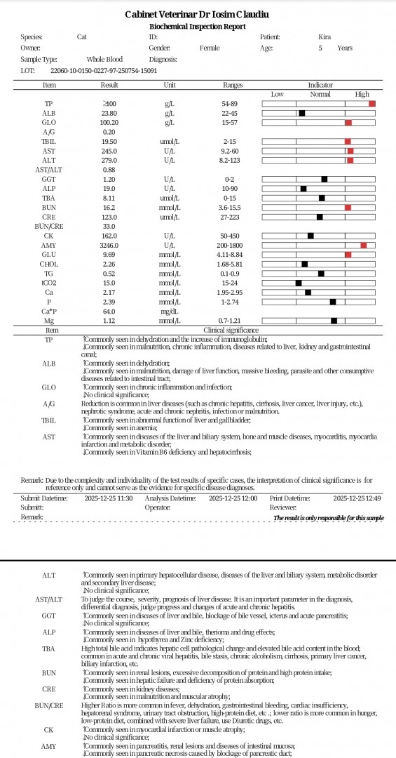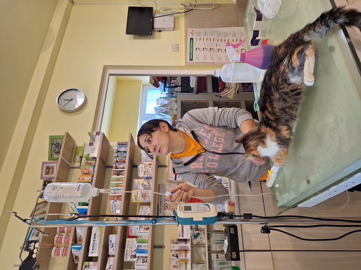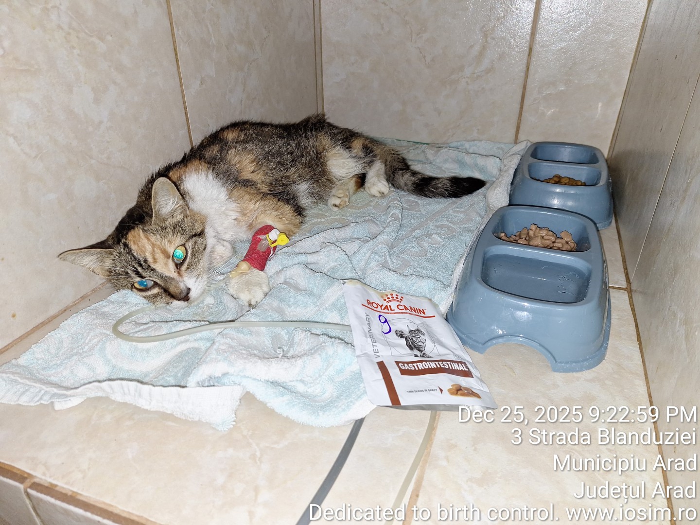 Urgenta de craciun este o pisica cu pancreatita. Am facut analize de sange si radiografii. Acum o perfuzam.